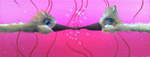 2009Twee kussende struisvogels op een roze achtergrond.